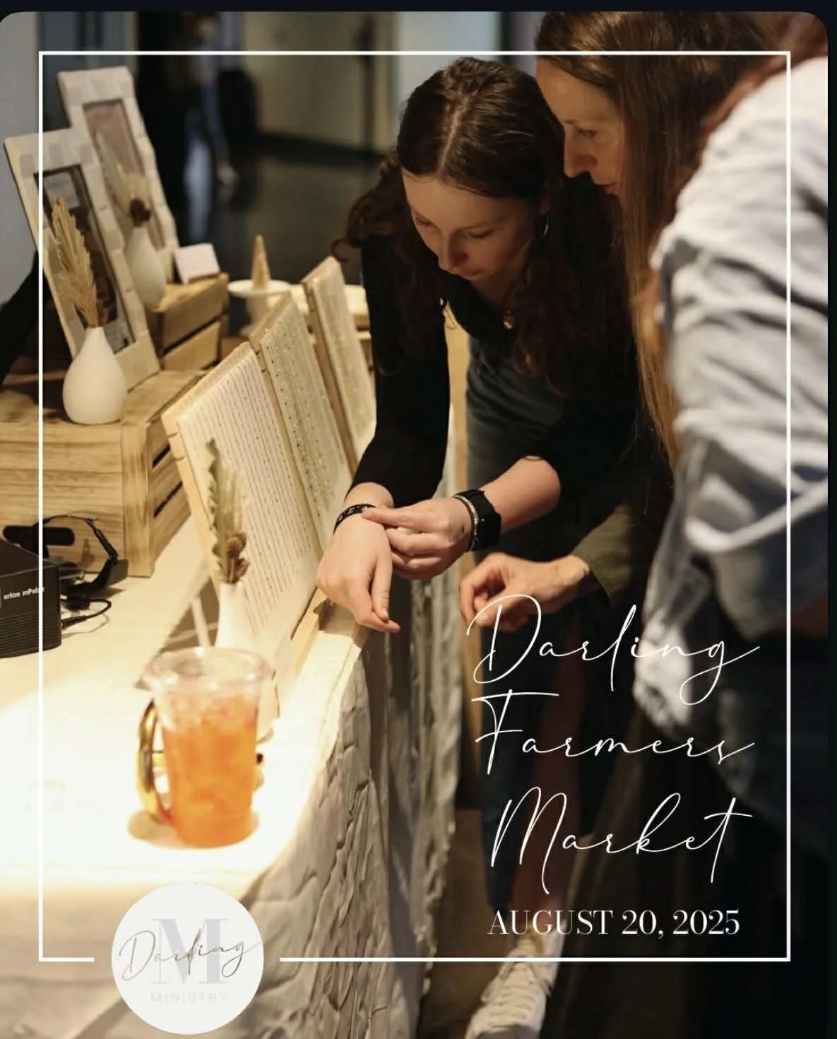 Join us at the Darling Farmers Market on August 20, 2025 for a heartwarming evening of local shopping, handmade goods, and community connection — hosted by Darling Ministry. A beautiful space to gather, support small businesses, and be inspired.